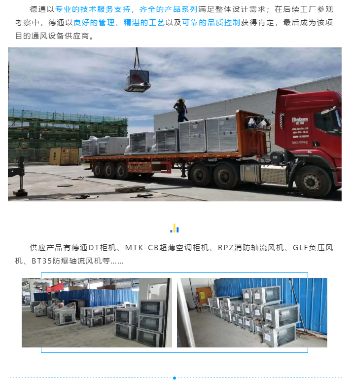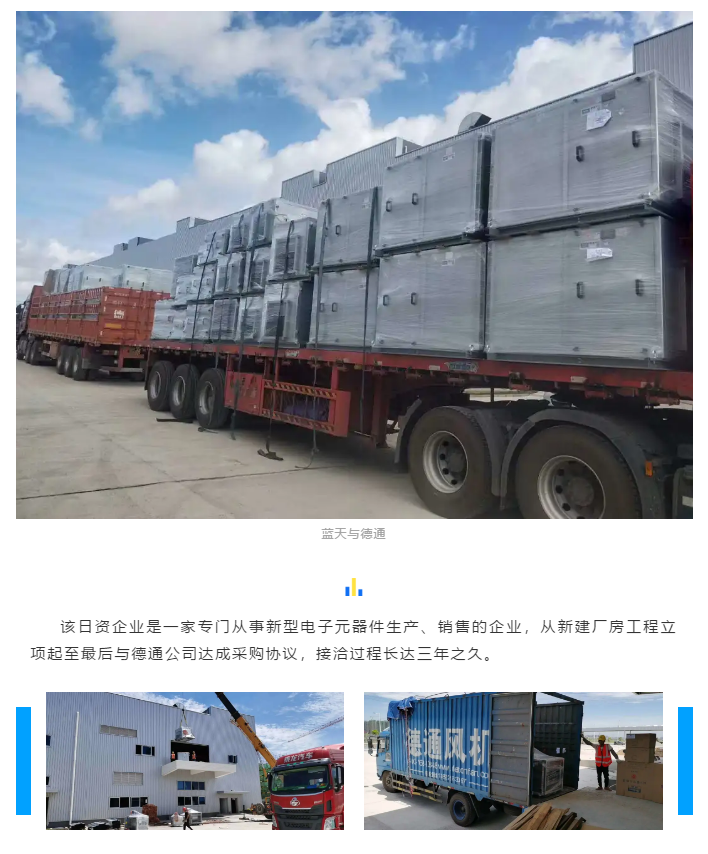 日前,德通風機正分批送達廣東江門某日資企業,主要用于該企業新建廠房建筑通風及崗位功能用途,整批訂貨量達200多臺。