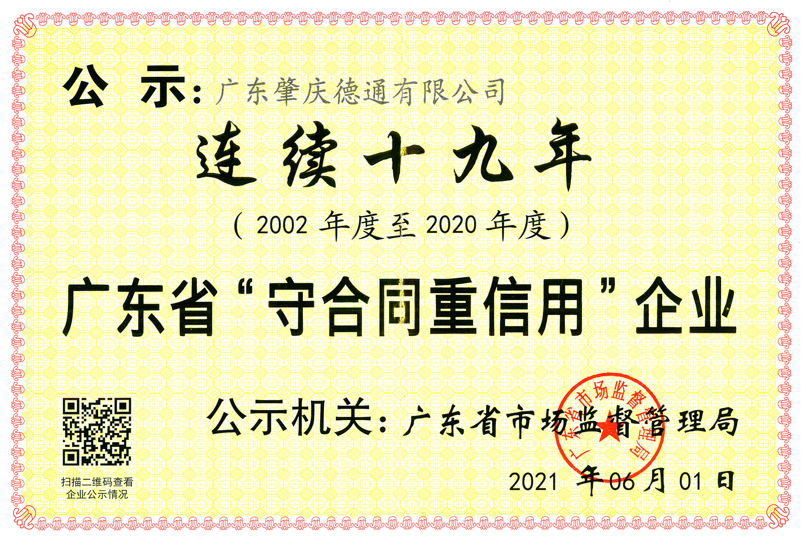 德通公司建立了健全的質量保證體系,于1999年通過了ISO9001國際質量管理體系認證,多項風機、風扇產品通過了CE、CB、ROHS、ERP、GS、UL、AMCA、SASO、SAA、S-mark、PAI、CCC等認證。并在近期再獲廣東省“守合同重信用企業”榮譽稱號,這是德通公司連續19年(2002-2020年度)獲得此殊榮。